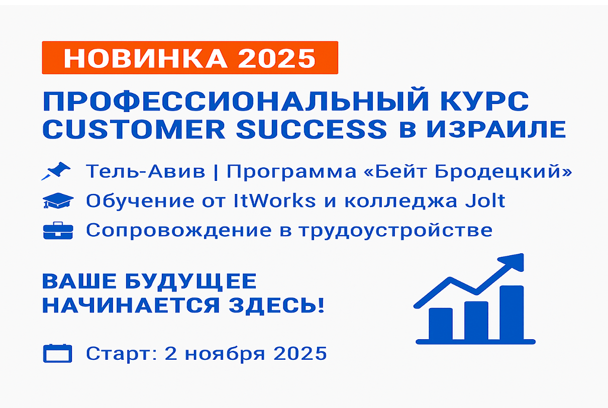 Мы предлагаем новый профессиональный курс в сфере Customer Success (маркетинг по работе с клиентами) — направление, активно развивающееся в израильском хай-теке.